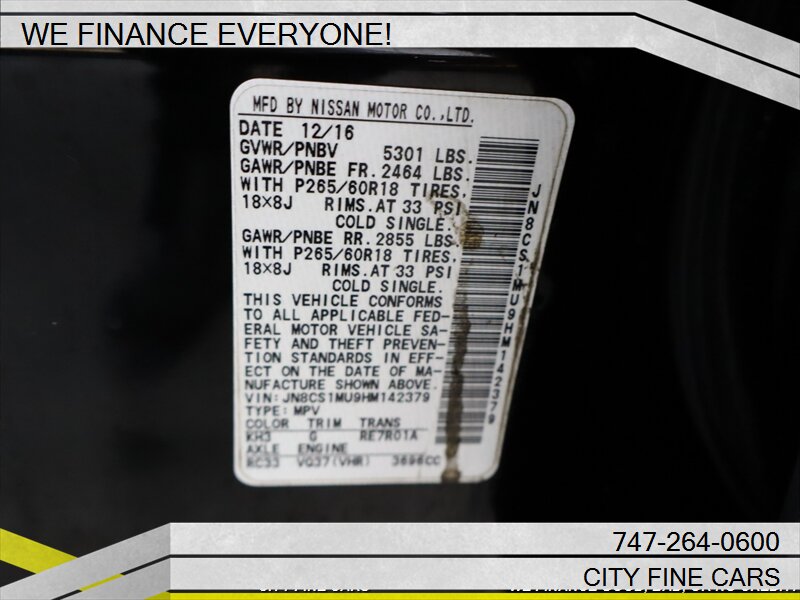 We are happy to offer this beautiful and sharp 2017 INFINITI QX70 ! We offer financing to EVERYONE whether you have GOOD. BAD, NO CREDIT, OR TIN NUMBER, WE CAN FINANCE YOU WITH THE BEST RATES. LOWEST RATES FOR WHATEVER YOUR CREDIT SITUATION IS. Call us today to set up your test drive towards ownership. To ensure your complete satisfaction, we strongly advise, as it is your responsibility to verify with the dealer that all the details listed, including complete vehicle specifications and price are accurate, vehicles location and availability preferably before visiting our location. We do not warrant the accuracy of the options and specifications the vehicles we sell come with. Vehicle availability and price are subject to change at any given time. Please feel free to call (747)-264-0600.