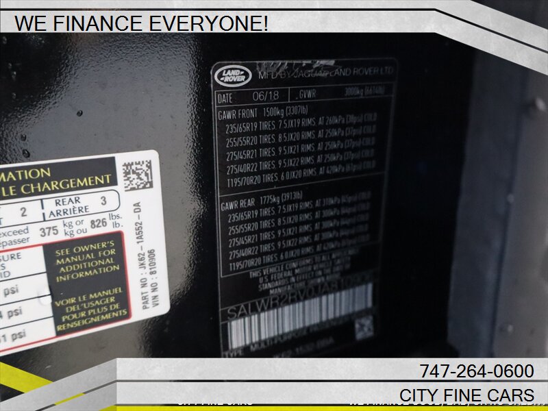 We are happy to offer this beautiful and sharp 2018 LAND ROVER RANGE ROVER SPORT HSE ! We offer financing to EVERYONE whether you have GOOD. BAD, NO CREDIT, OR TIN NUMBER, WE CAN FINANCE YOU WITH THE BEST RATES. LOWEST RATES FOR WHATEVER YOUR CREDIT SITUATION IS. Call us today to set up your test drive towards ownership. Listed price excludes tax, documentation fee, smog and DMV fees. To ensure your complete satisfaction, we strongly advise, as it is your responsibility to verify with the dealer that all the details listed, including complete vehicle specifications and price are accurate, vehicles location and availability preferably before visiting our location. We do not warrant the accuracy of the options and specifications the vehicles we sell come with. Vehicle availability and price are subject to change at any given time. Please feel free to call (747)-264-0600.