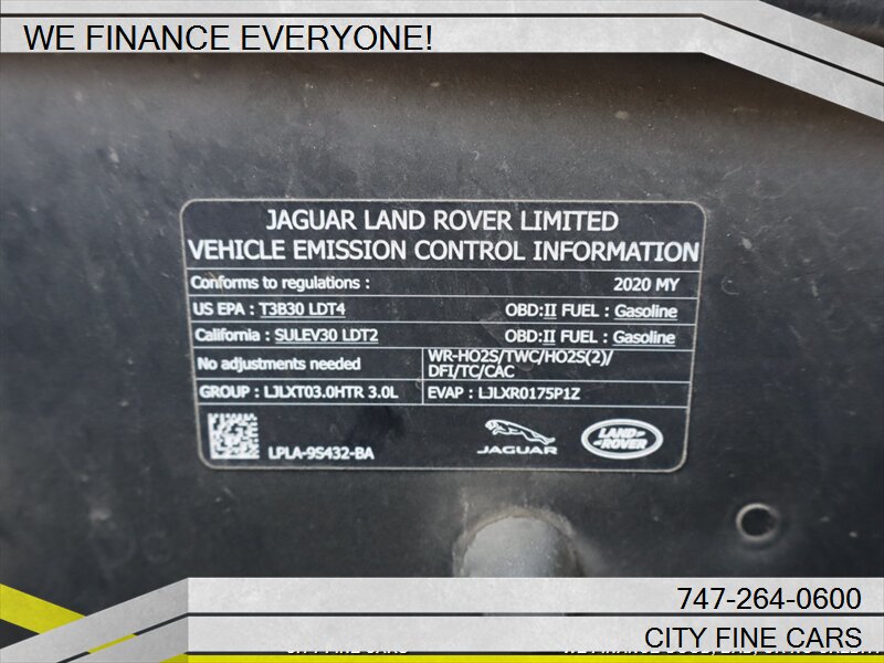 We are happy to offer this beautiful and sharp 2020 LAND ROVER RANGE ROVER ! We offer financing to EVERYONE whether you have GOOD. BAD, NO CREDIT, OR TIN NUMBER, WE CAN FINANCE YOU WITH THE BEST RATES. LOWEST RATES FOR WHATEVER YOUR CREDIT SITUATION IS. Call us today to set up your test drive towards ownership. To ensure your complete satisfaction, we strongly advise, as it is your responsibility to verify with the dealer that all the details listed, including complete vehicle specifications and price are accurate, vehicles location and availability preferably before visiting our location. We do not warrant the accuracy of the options and specifications the vehicles we sell come with. Vehicle availability and price are subject to change at any given time. Please feel free to call (747)-264-0600.