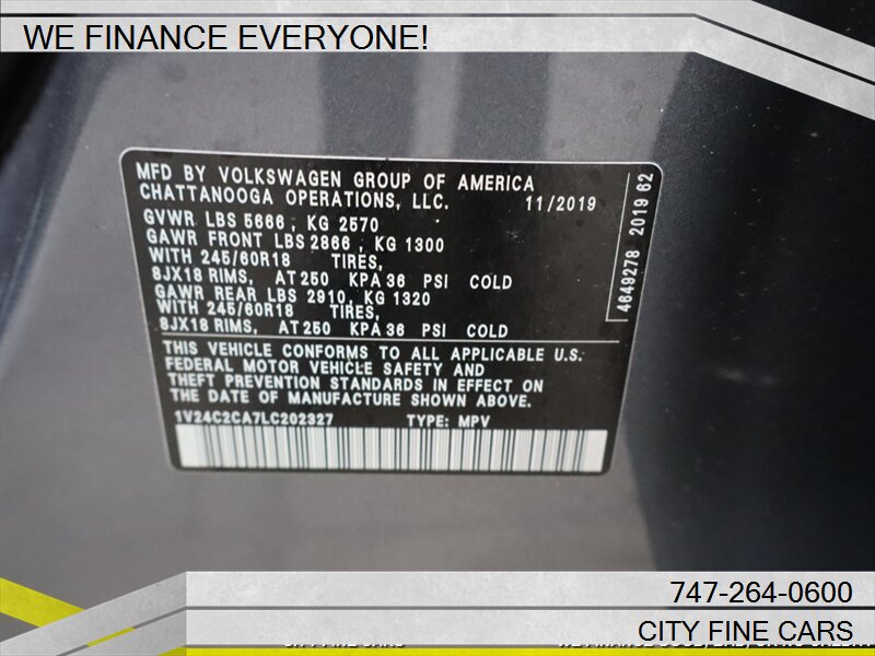 We are happy to offer this beautiful and sharp 2020 VOLKSWAGEN ATLAS CROSS SPORT 2.0T SE 4MOTION ! We offer financing to EVERYONE whether you have GOOD. BAD, NO CREDIT, OR TIN NUMBER, WE CAN FINANCE YOU WITH THE BEST RATES. LOWEST RATES FOR WHATEVER YOUR CREDIT SITUATION IS. Call us today to set up your test drive towards ownership. Listed price excludes tax, documentation fee, smog and DMV fees. To ensure your complete satisfaction, we strongly advise, as it is your responsibility to verify with the dealer that all the details listed, including complete vehicle specifications and price are accurate, vehicles location and availability preferably before visiting our location. We do not warrant the accuracy of the options and specifications the vehicles we sell come with. Vehicle availability and price are subject to change at any given time. Please feel free to call (747)-264-0600.